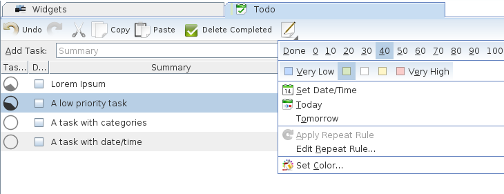 * NEW: Allow reset all granted/denied security permissions (see Settings | Advanced | Security Manager) * NEW: Font Chooser: Allow copy selected font name (see context menu) * NEW: Color Chooser (Web tab): Allow "rgb(r, g, b)" input format * NEW: File Chooser: Remember recent files and folders (see Places button) * NEW: Tree: "Add Task..." action in context menu (works with Todo Lists)