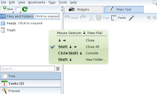 * NEW: Hold right-mouse-button and move cursor to list all available mouse gestures